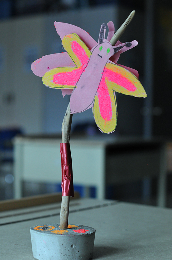 Dans chaque classe, je rencontre des rêveurs qui prennent leur temps -et j’aimerais qu’ils en aient plus car cela semble toujours un déchirement pour ceux-ci de quitter leur création-, des craintifs qui n’osent pas commencer, des constructeurs se lançant corps et âme dans l’assemblage de leur sculpture, des petits inquiets qui me chuchotent à l’oreille » madame, je ne sais pas quoi faire… ».