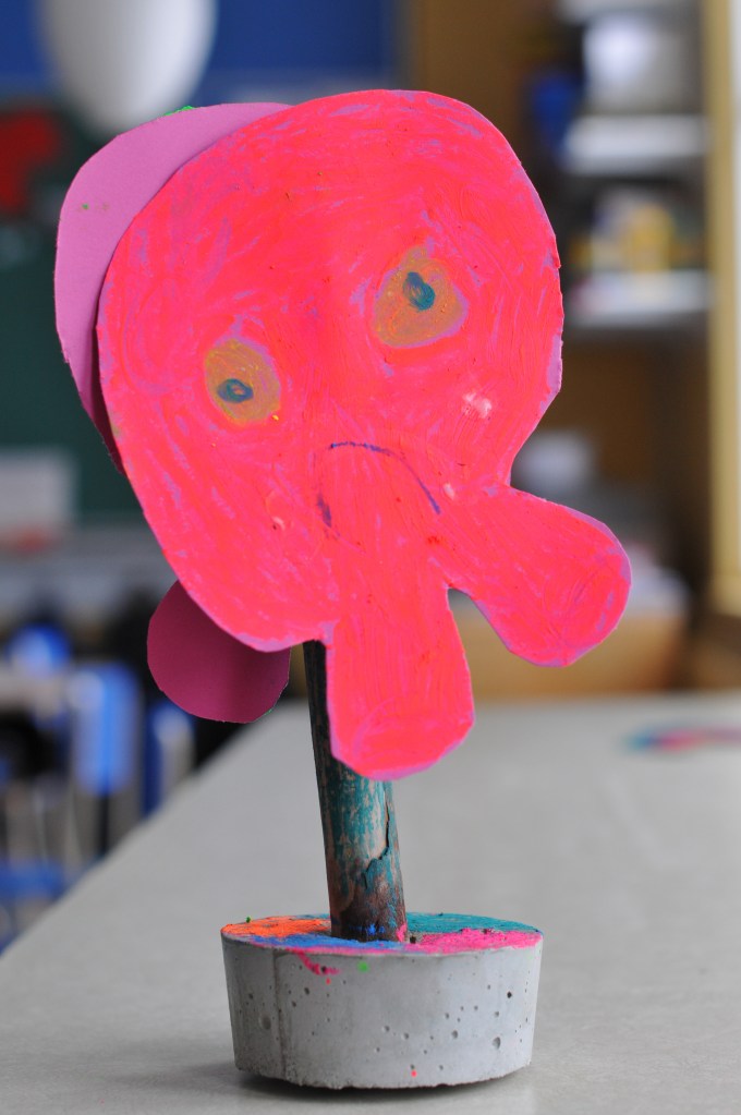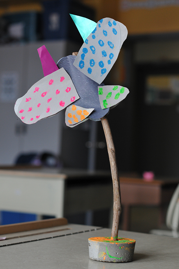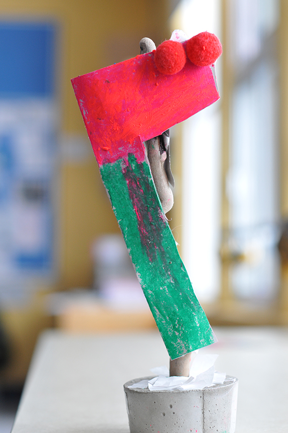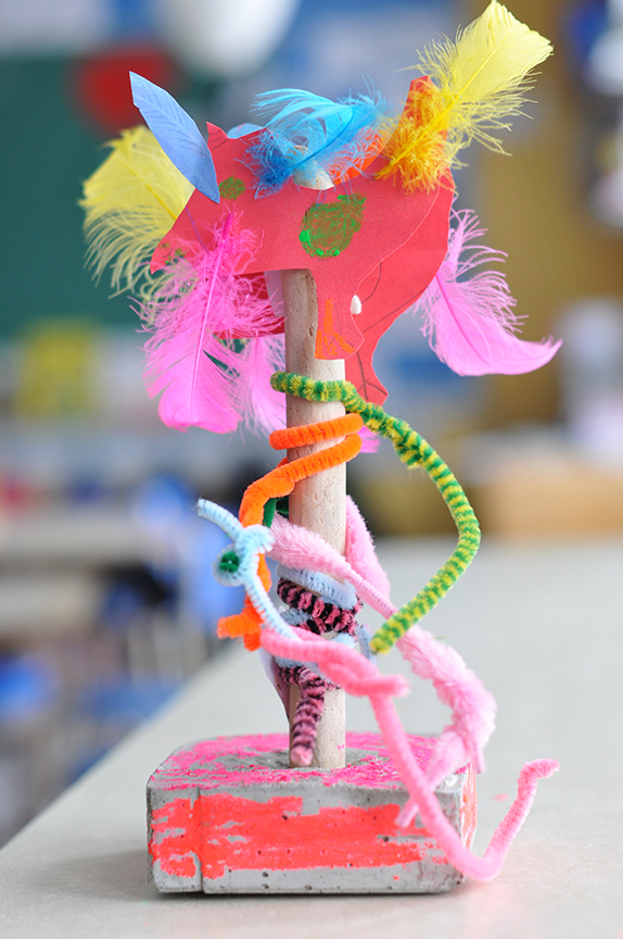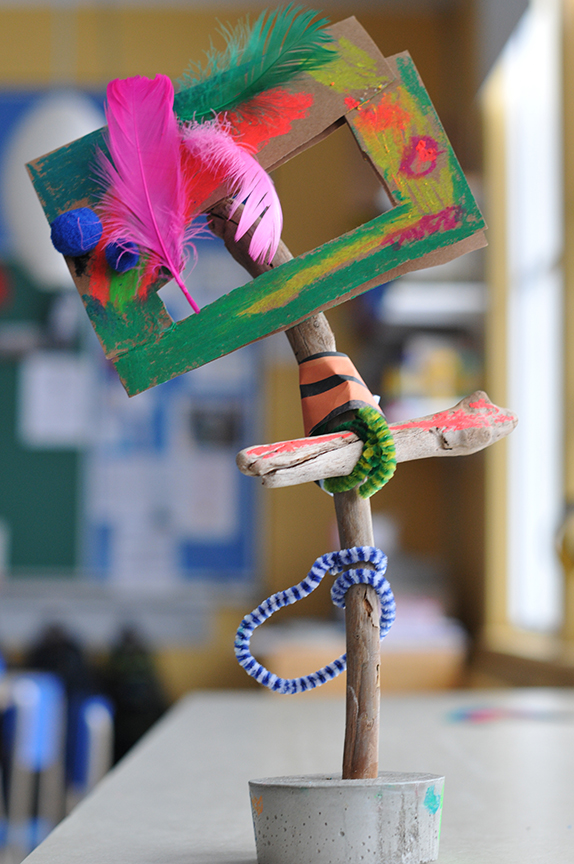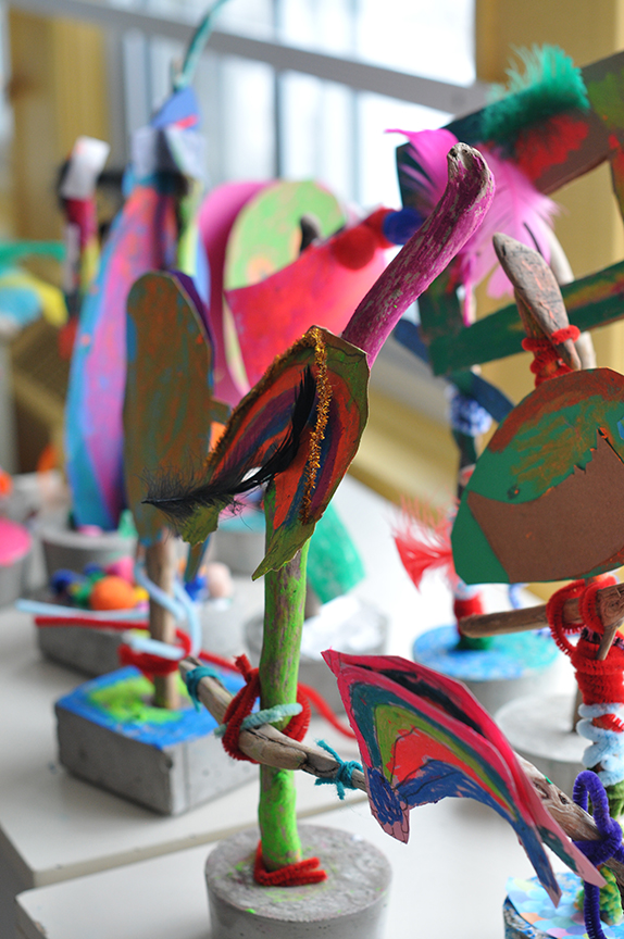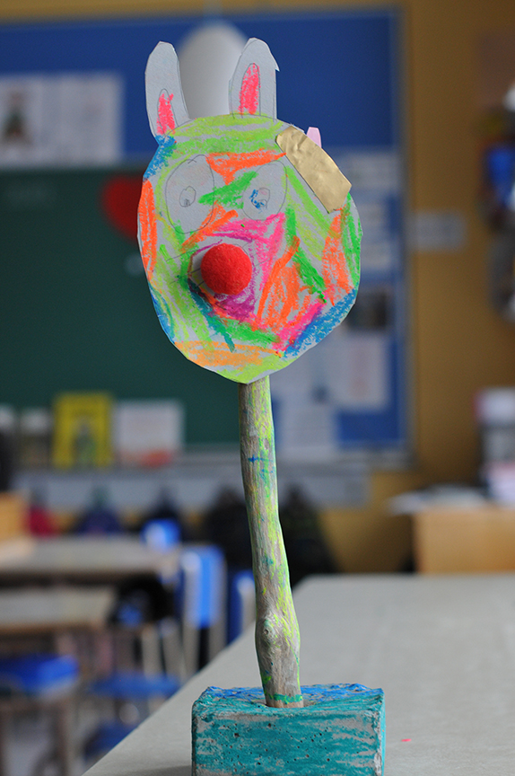 Au-delà du résultat, j’espère qu’ils garderont en mémoire le plaisir qu’ils ont éprouvé à créer, à se mettre à l’oeuvre . Ici, des élèves de première et deuxième année s’en sont donné à coeur joie!